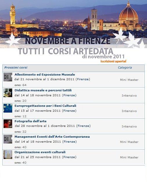 Novembre a Firenze: Corsi Artedata di Management Eventi Arte Contemporanea/November in Florence: Intensive Workshops of Contemporary Art Events Management
