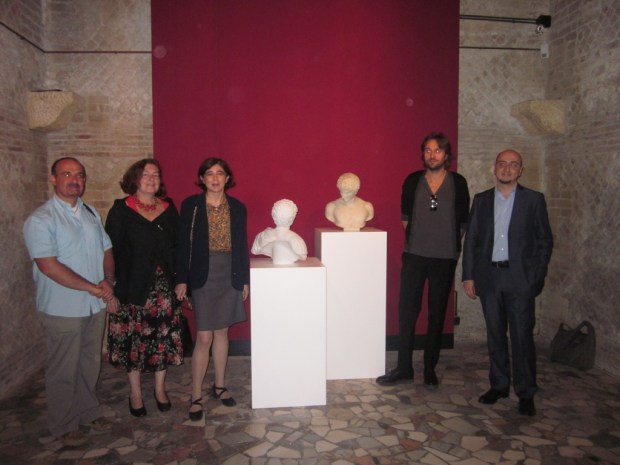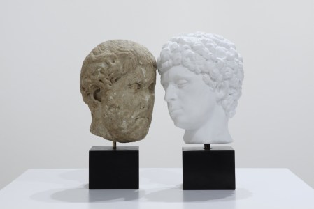 A parte questo disguido tecnico, che potrebbe pero’ scoraggiare alcuni, me compresa, l’immagine ufficiale della giornata e’ l’opera di Francesco Vezzoli dal titolo “Self-portrait as emperor Hadrian loving Antinous”: l’artista ha presentato ieri a villa Adriana di Tivoli il gruppo scultoreo raffigurante il proprio autoritratto, alias Adriano, che volge lo sguardo verso Antinoo, nell’ambito della mostra ‘Antinoo. Il Fascino della Bellezza’, in programma fino al 4 novembre .