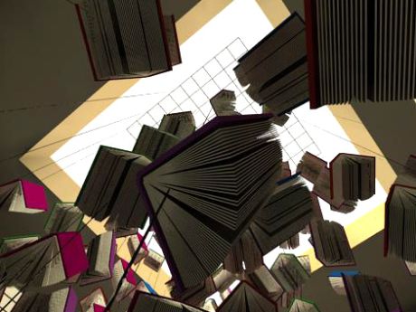 The winter Pitti Immagine is a celebration of books, either paper or digital: giant settings, installations and events inspired by books will lead the visitor throughout the fair, while a huge statement installation by architect Oliviero Baldini will tower in the main piazza of the 15th century Fortezza da Basso. The thousands of buyers and press will be welcomed by a huge skateboard made of books, suggesting the idea that reading is an experience at the same time exciting and daring, as well as by facades of buildings covered with books, whose material manifestations serve as a hint to create images.