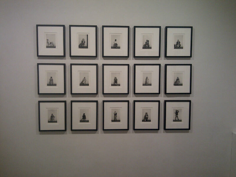 Murder Mystery People had been originally conceived as a storyboard of a film, whose characters were shown in 82 scenes of a fictitious crime movie; the original display of the cutouts was hung around the exhibition space in order to recreate the rhythm of a movie, while in the current show only 17 black and white reprints of the original photos are shown.