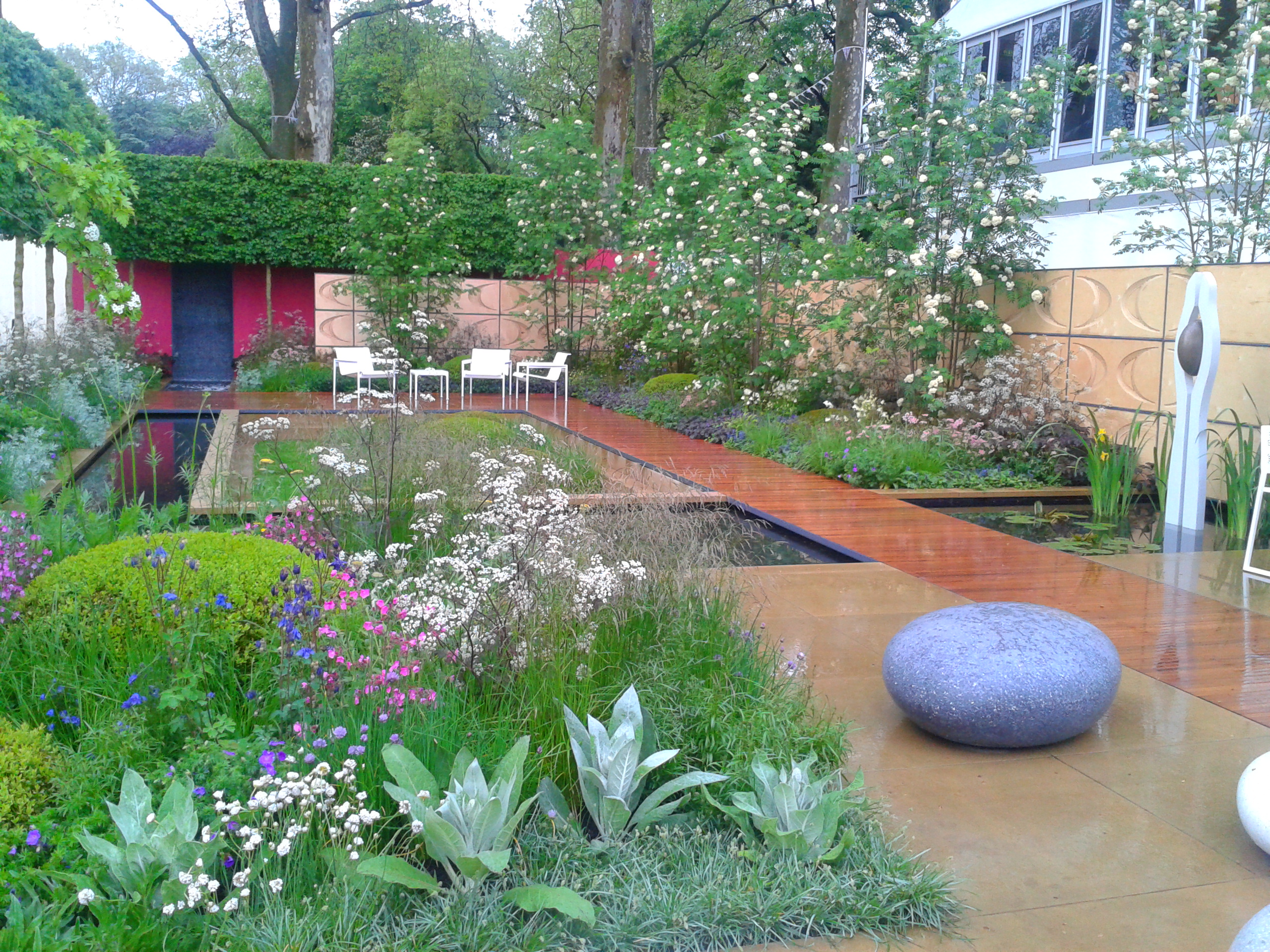 My visit to the Chelsea Flower Show this year was a very quick one as I had to brave the pouring rain and the wintery weather – it was so wet and damp that I had to sip tea instead of the usual and much beloved Pimm’s – so that at the end of the tour I had the fastidious feeling to have missed something terribly important……Anyway the Show gardens were more sophisticated than ever, presenting subtle planting and ingenious designs: “A classic show with an Australian twist” as the Daily Telegraph has defined the centenary edition.