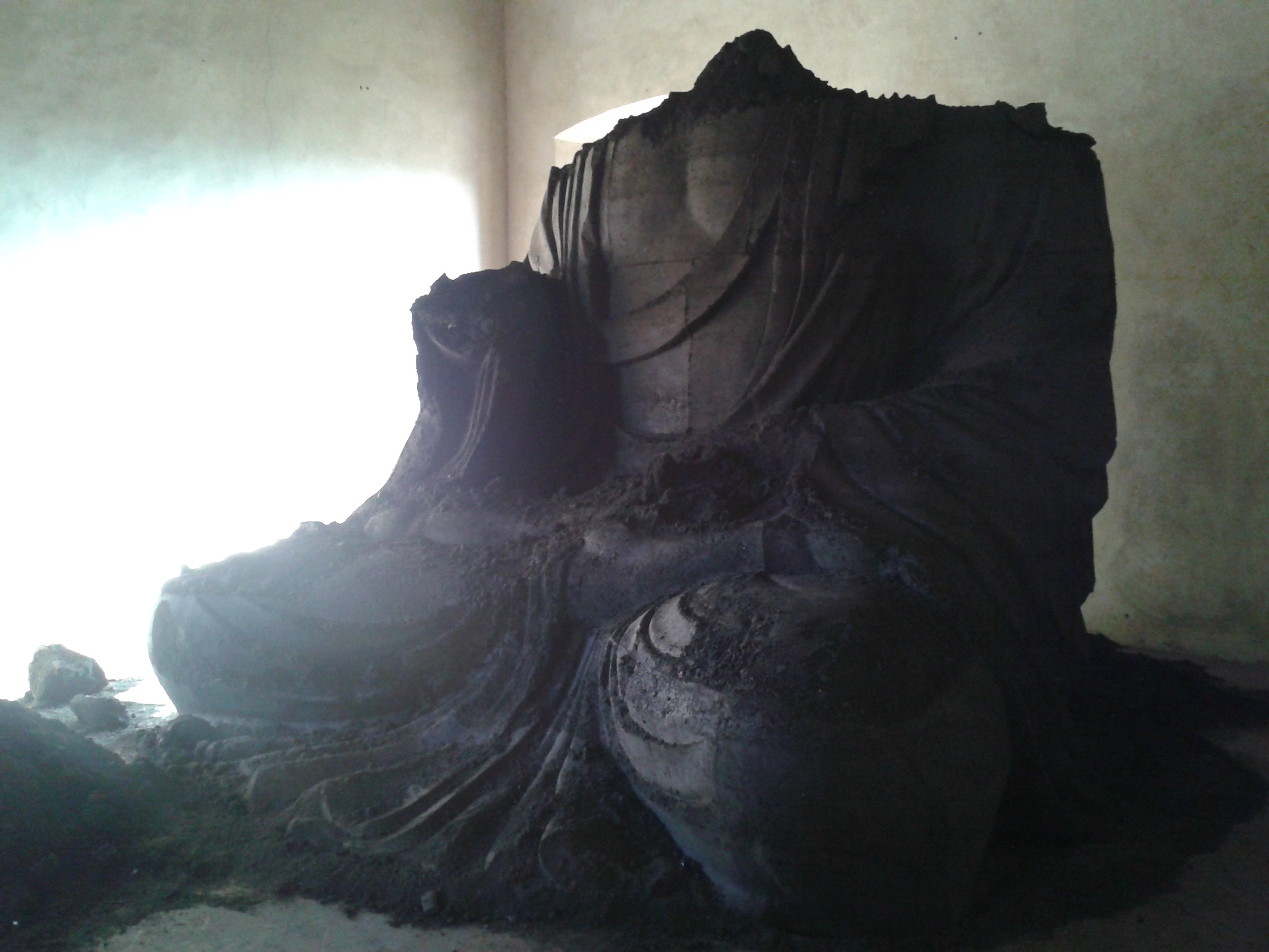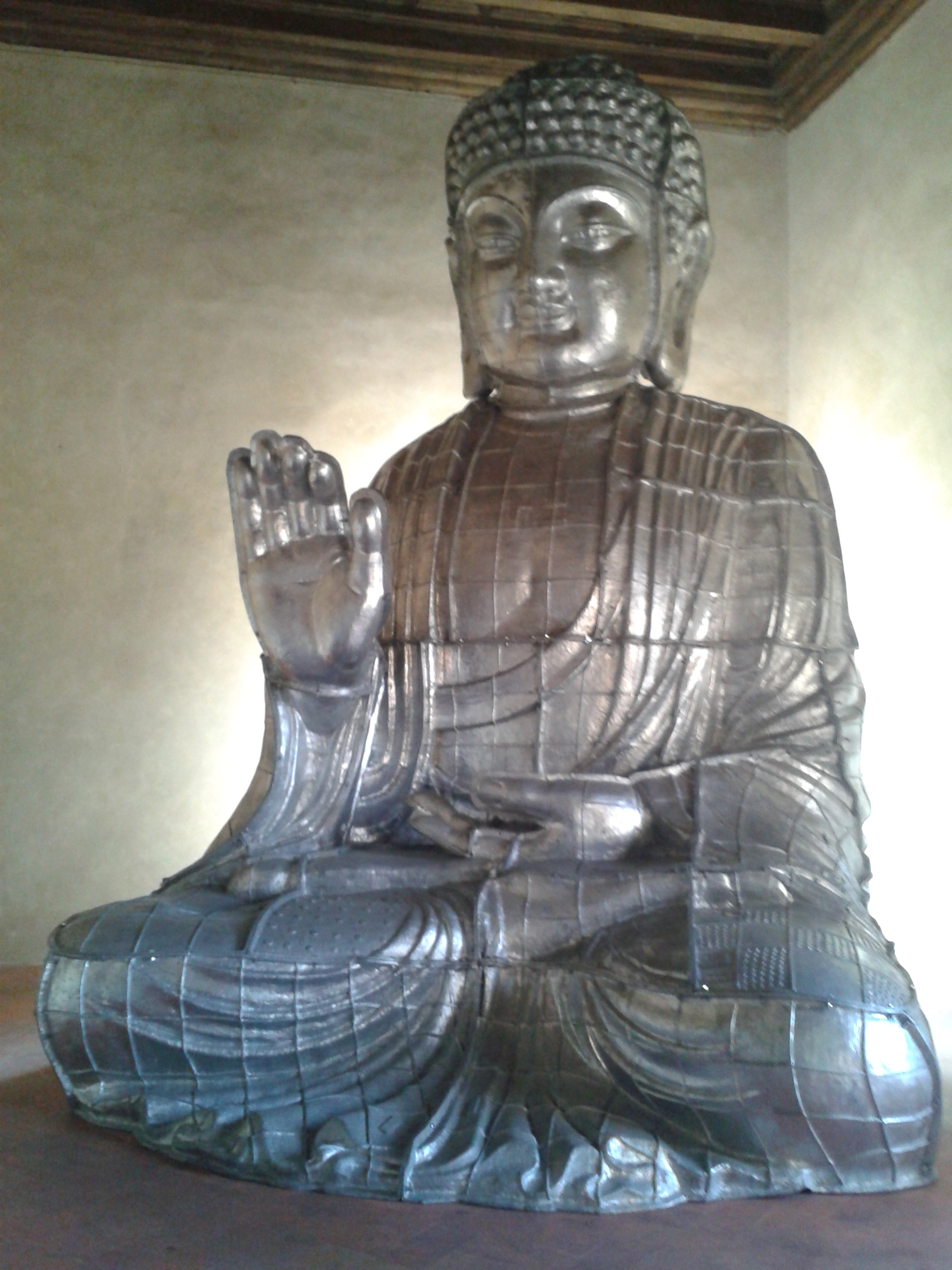 In 2007 these two sculptures were installed facing each other, so that, as time went by, the environment would affect the work and, as the floor would tremble with movement, ash Buddha will also change and fall into pieces.