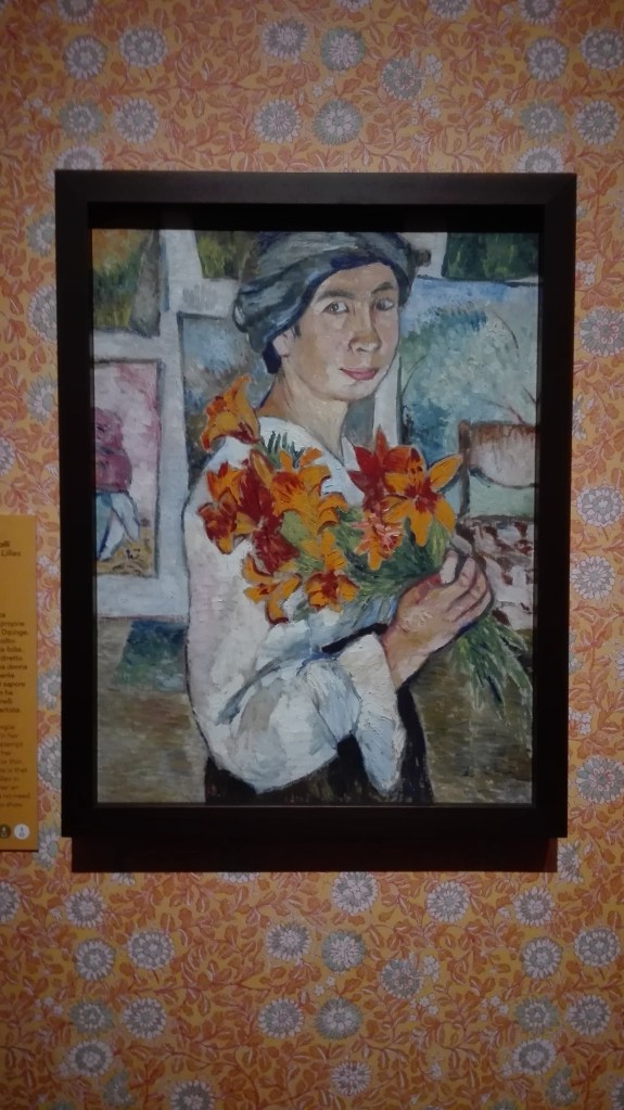 As Strozzi’s curator Ludovica Sebregondi described in her presentation, Goncharova is mainly know to the Italian audiences for her work to Diaghilev’s Ballets Russes as set and costume designer between 1914 and 1929. Her work seems suspended between passion, highlighted by the bright colours of the set up, and composure.