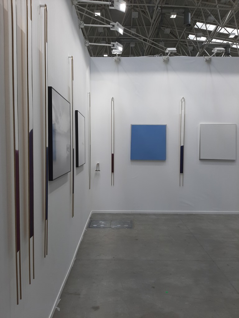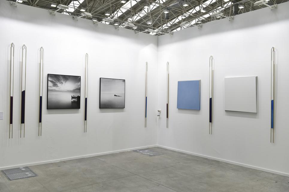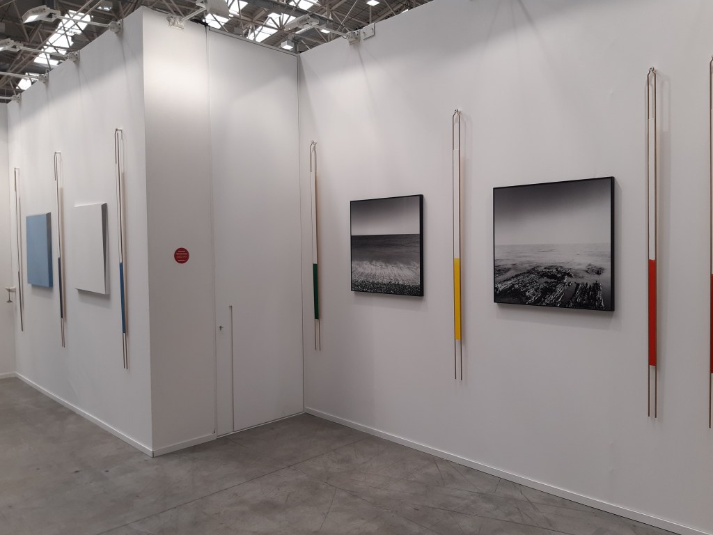 One of the most positive aspects of this year’s Fair has been the great care of the curatorial choices from the majority of the exhibiting galleries. Vistamare Gallery, the Winner of the Arte e Progetto Prize, is one of the most brilliant examples of the careful juxtaposition of photography, painting and installations, creating a consistent and ethereal ensemble as well as a very elegant combination. The black and white photos by Mimmo Iodice and the light blue dreamlike paintings by Spalletti are interlaced with Mario Airò‘s coloured diapasons, making it one of one the most refined and effective displays of the fair.