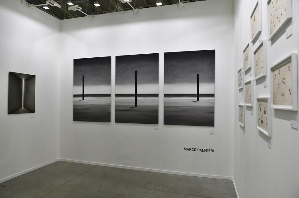 Another successful project was presented by Lugano’s Ravizza Gallery together with Berlin’s Volker Diehl Galerie. The gallery duo recreated late painter and sculptor Gunter Weseler‘s studio within the fair space, using the artsist’s personal furniture such as his desk and armchair, covered with white fur. The project reproduces his “Breathing Objects“, responding to the artist’s lifelong research on the phenomenon of breathing. He suffered from a throat illness that led him to be particularly aware of the breathing function and to investigate on the difficulties and effort of this vital action.