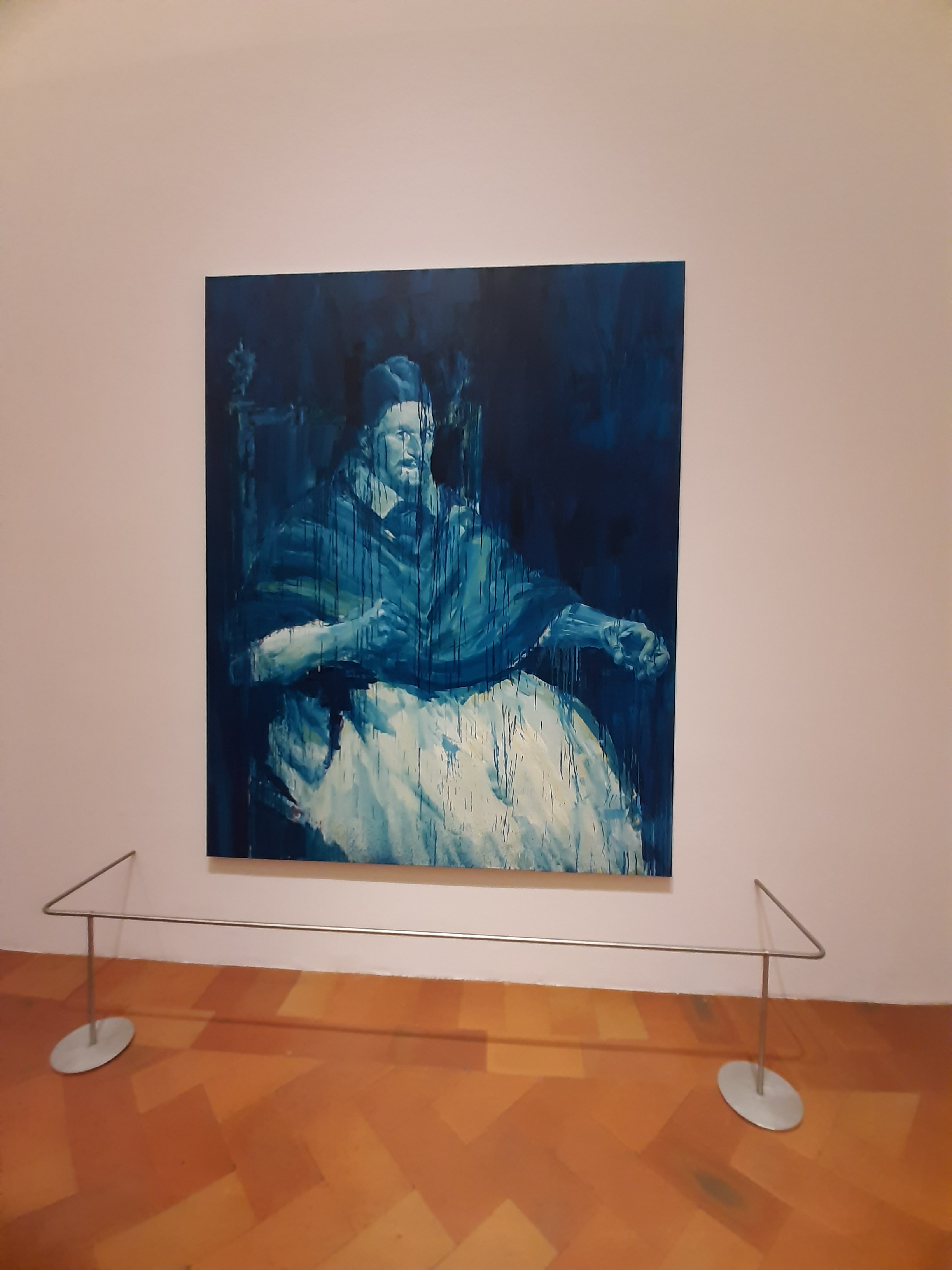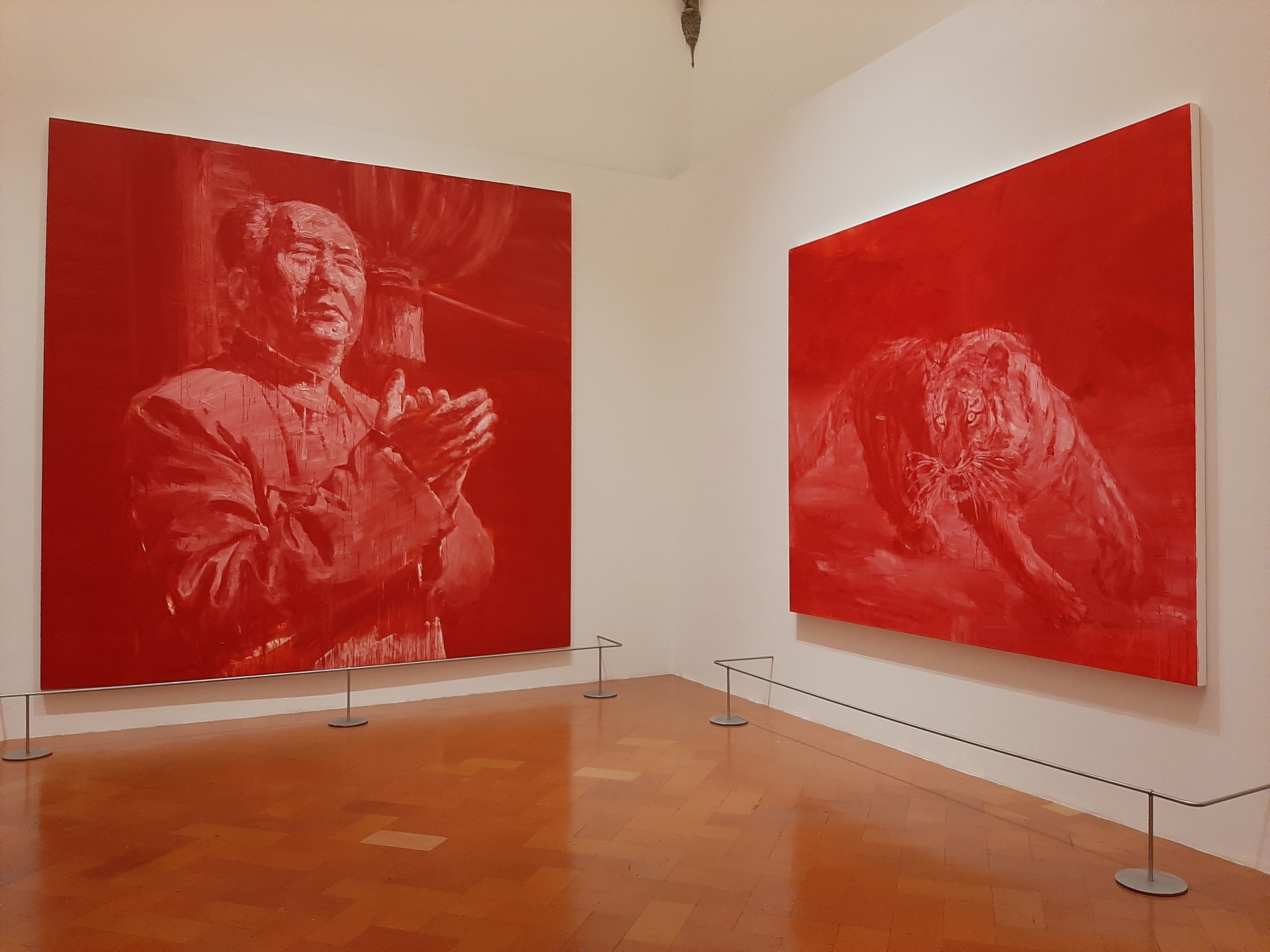 The exhibition itinerary takes us through a journey about the reflection on the relationship between history and the contemporary world, between memory and the present. exploring a wide variety of genres from portraiture, landscapes, still lives and historical painting, through to photographic images from different sources such as the artist’s own personal archive, magazine covers, film stills or celebrated works from art history. The powerful use of his two-colour palette – black and white, red and white and blue and white – together with the monumental format of the paintings urge the observer to think about the many contradictions and dangers of the upcoming AI age such as the deceitfulness of digital images, the ever more blurred boundary between private and public and the real value of authorship.