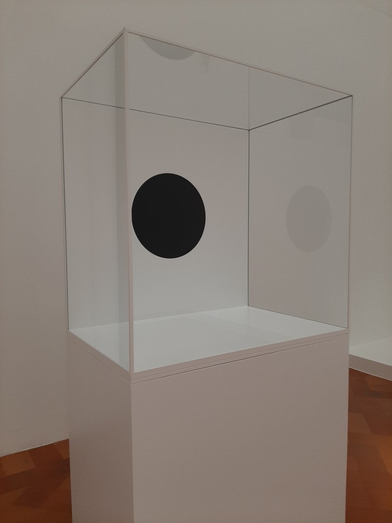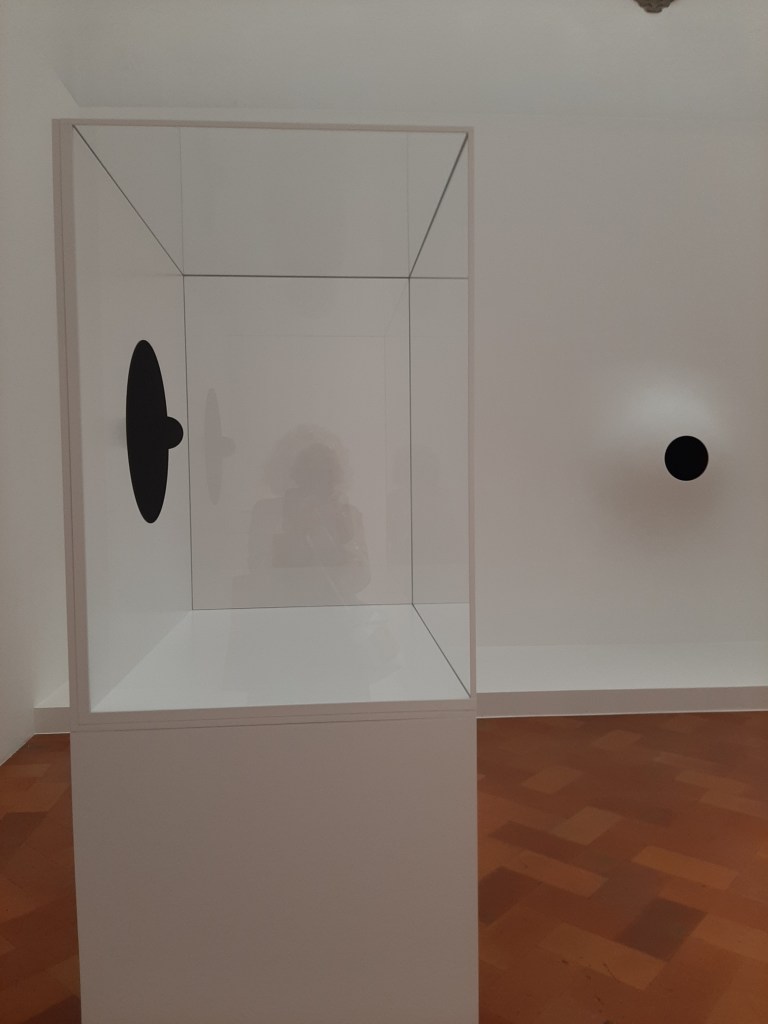 At the hearth of the exhibition path sit two rooms showcasing some of Kapoor’s most ground-breaking works, which challenge not only the very idea of physical and tangible object but question the notion of being itself. Non-Object Black (2015), a black form that dissipates as the visitor’s gaze moves around it, is characterised by the use of Vantablack, an innovative material capable of absorbing 99.9% of visible light, making the third dimension of the object dissolve in front of your eyes.
