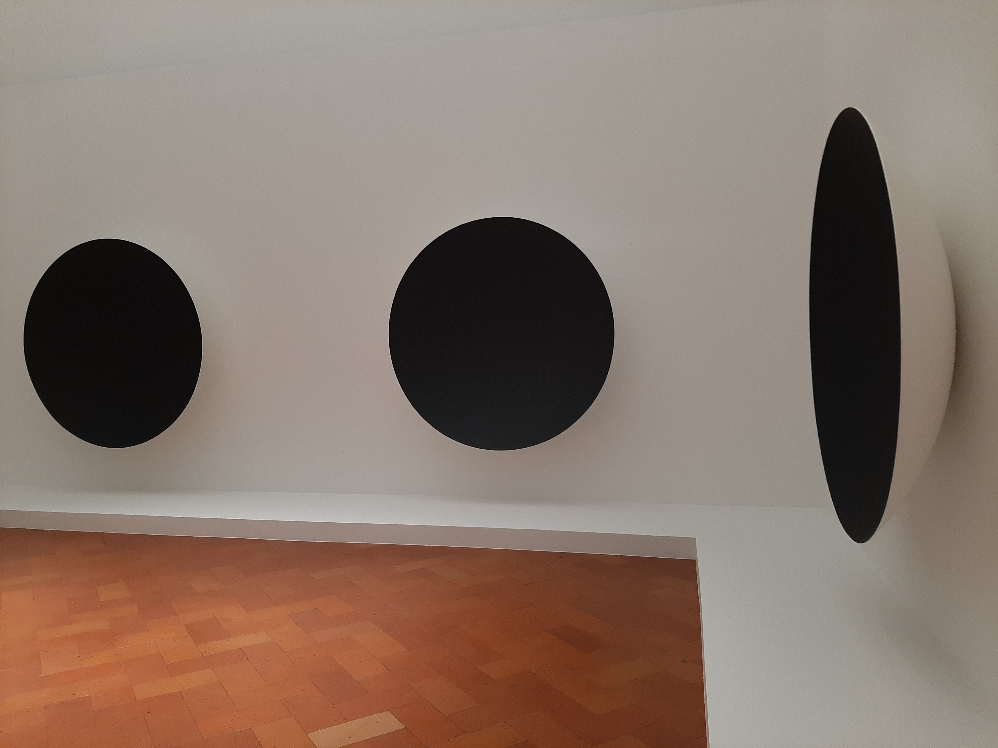 Kapoor’s investigation into the non-object concept is pursued through Gathering Clouds (2014), a set of black concave monochrome that absorb the surrounding space and dissolve into their saturated blackness, distorting our perception and even invalidating the capability of capturing the three-dimensional reality of the work.