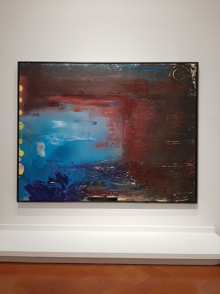 A final mention to the closing room where works on paper are on show together to works on canvas such as the beautiful and sculptural Borrow Dream (1992), where the trowelled surface raises questions about the meaning of an artist’s work in the passing of time.